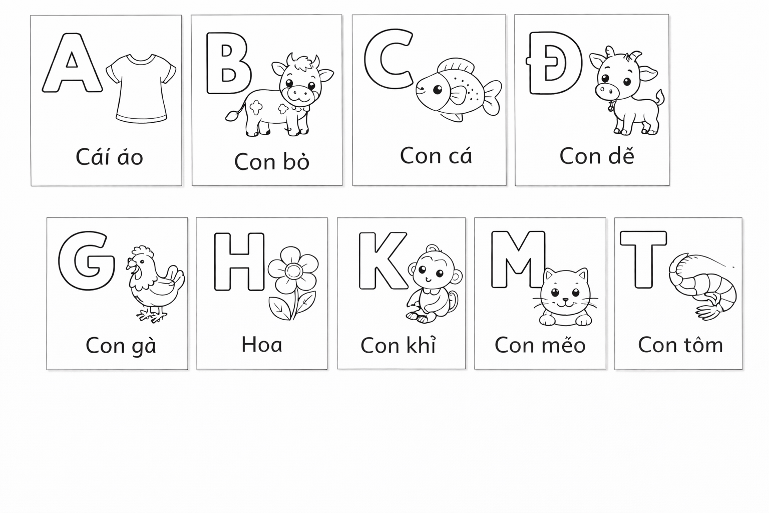 10 bài tập tô màu kết hợp học chữ cái đơn giản cho bé 3–5 tuổi giúp bé làm quen A–Z một cách tự nhiên, không áp lực.
