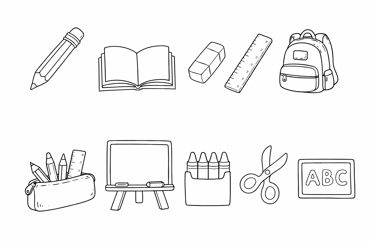 Với 10 tranh tập tô màu đồ dùng học tập, bé sẽ sẵn sàng hơn cho hành trình đến trường, vừa học vừa chơi một cách vui vẻ.