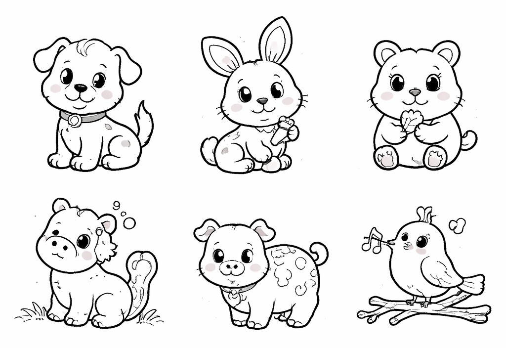 12 mẫu tô màu động vật quen thuộc cho bé 3–5 tuổi, nét đơn giản, dễ tô, giúp bé vừa chơi vừa học nhận biết con vật.