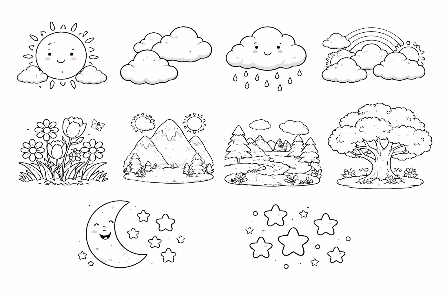 Với 10 bài tập tô màu theo chủ đề thời tiết và thiên nhiên, bé sẽ có thêm nhiều trải nghiệm học tập thú vị và gần gũi với cuộc sống hằng ngày.