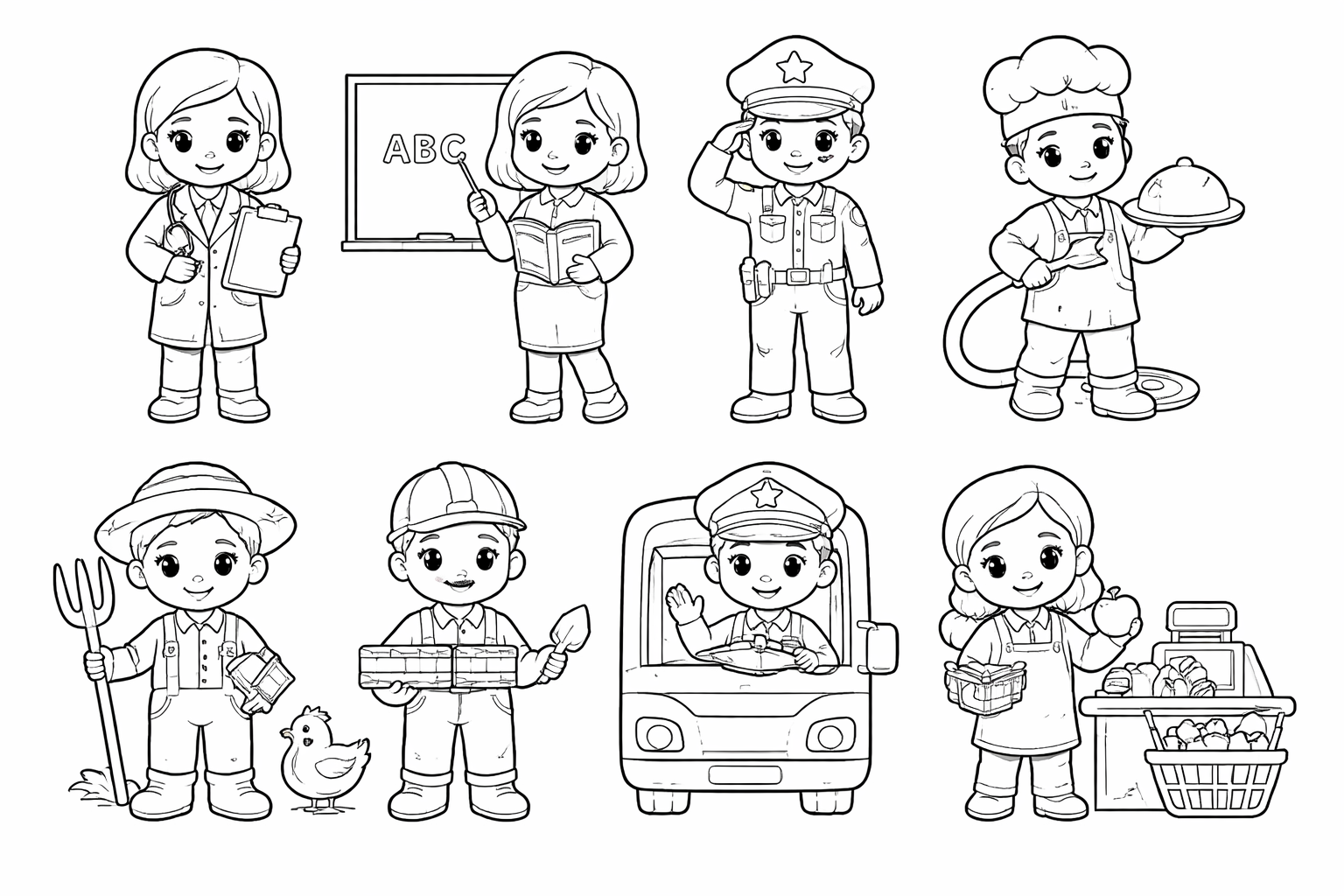 Với 10 bài tập tô màu theo chủ đề nghề nghiệp, bé sẽ vừa học vừa chơi, khám phá thế giới công việc một cách sinh động và thú vị.